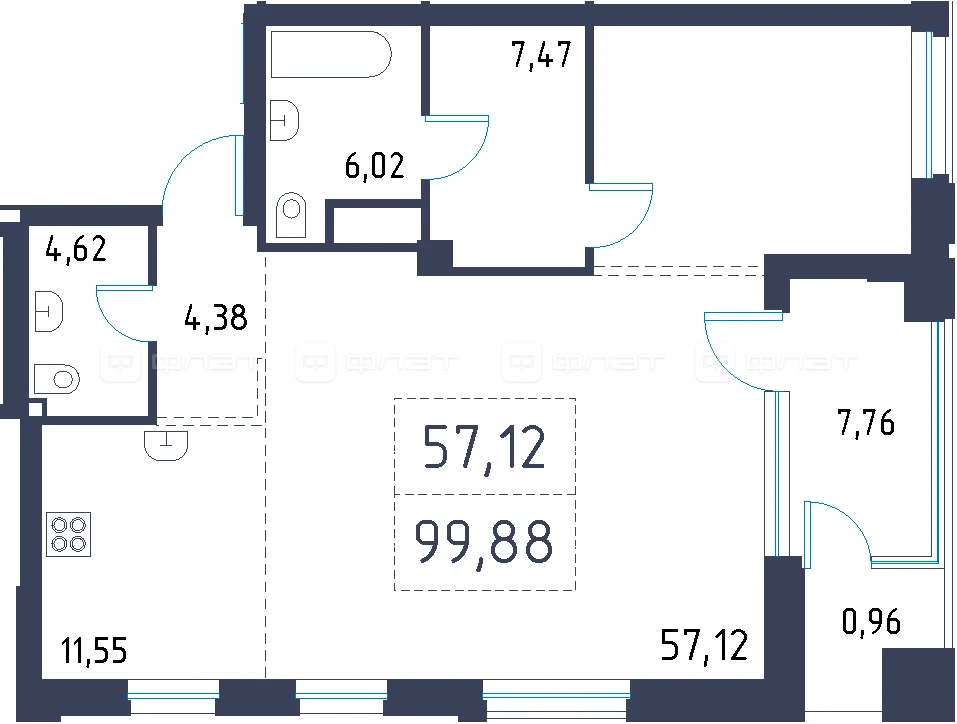 - 99.88/57.12/11.55 м²